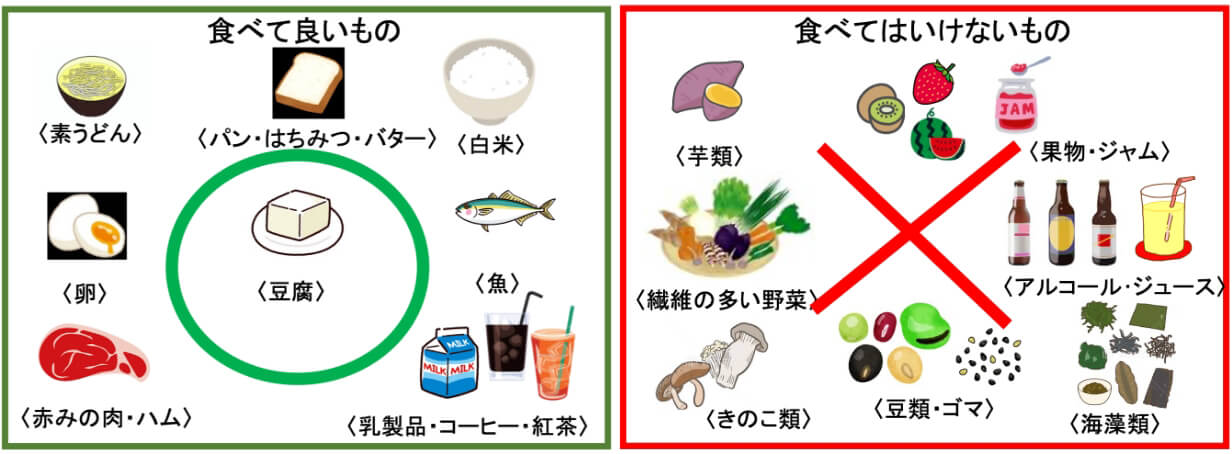 2. 夕食は午後9時までに済ませ、それ以降は検査が終了するまで絶食になります。
